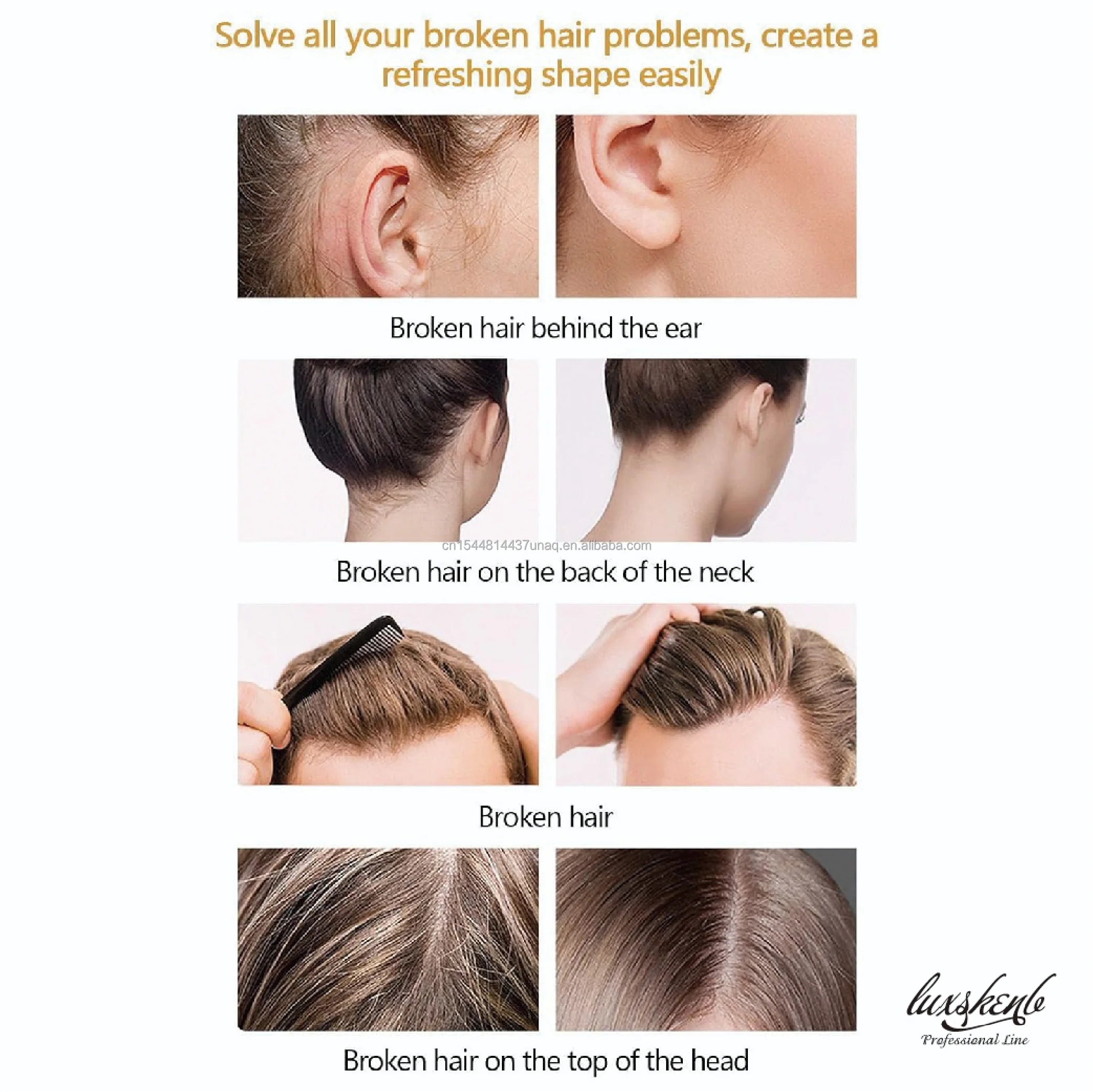 1. Comb the comb along the desired finishing direction with a comb; 2. Unscrew the wax stick out a part,screw it out a little, evenly spread it; 3. Apply a few times along the finishing place at the small broken hair that needs to be finished, and apply a small amount evenly; 4. After smearing,use the fine-toothed comb again, so that the small broken hair will obey the post.