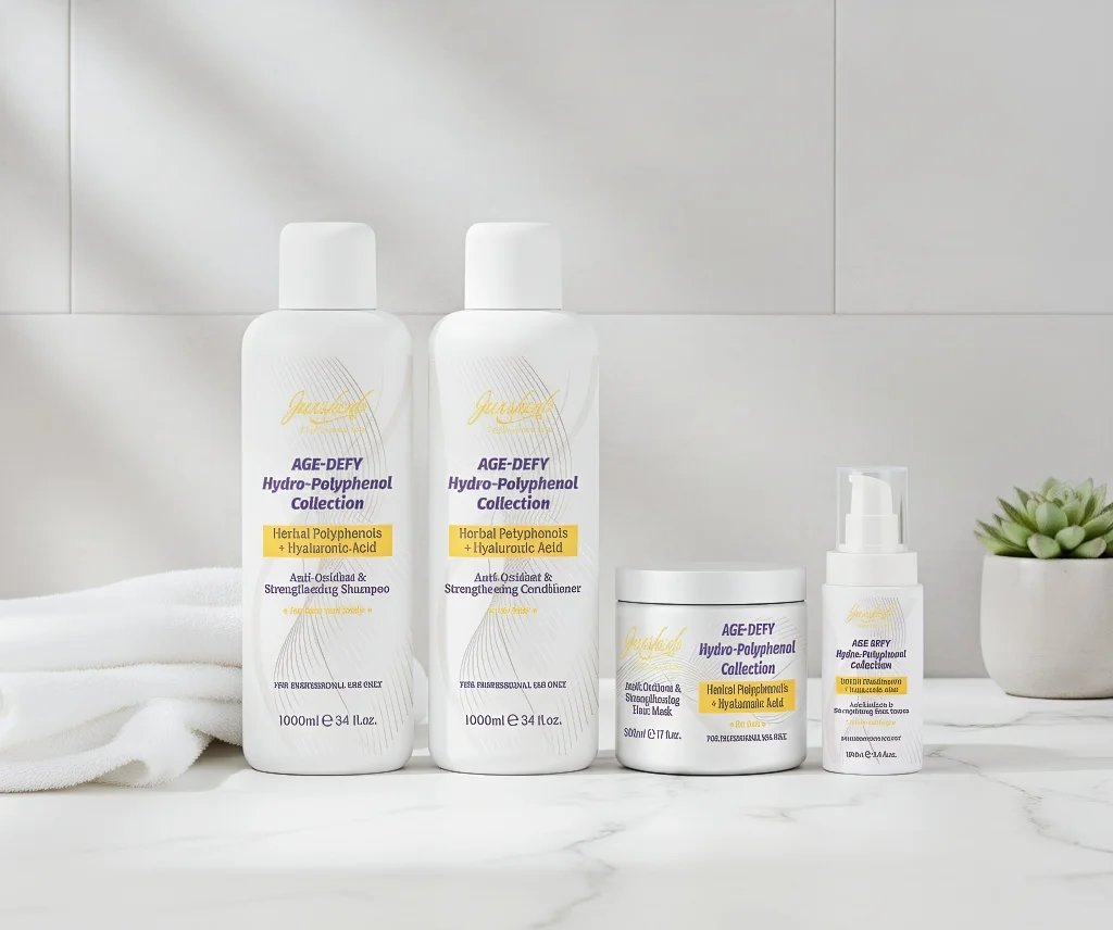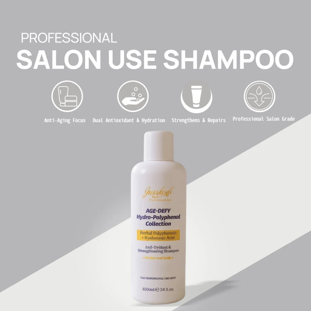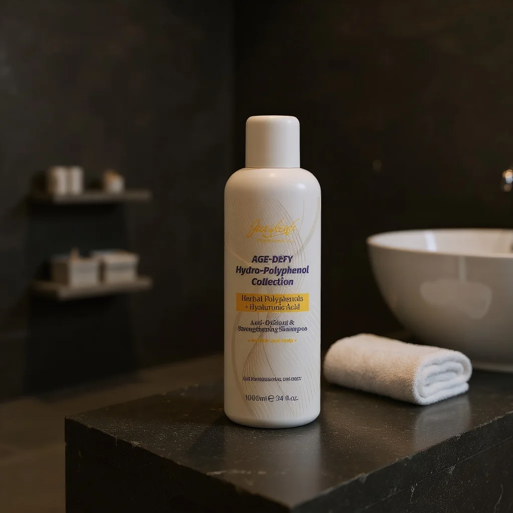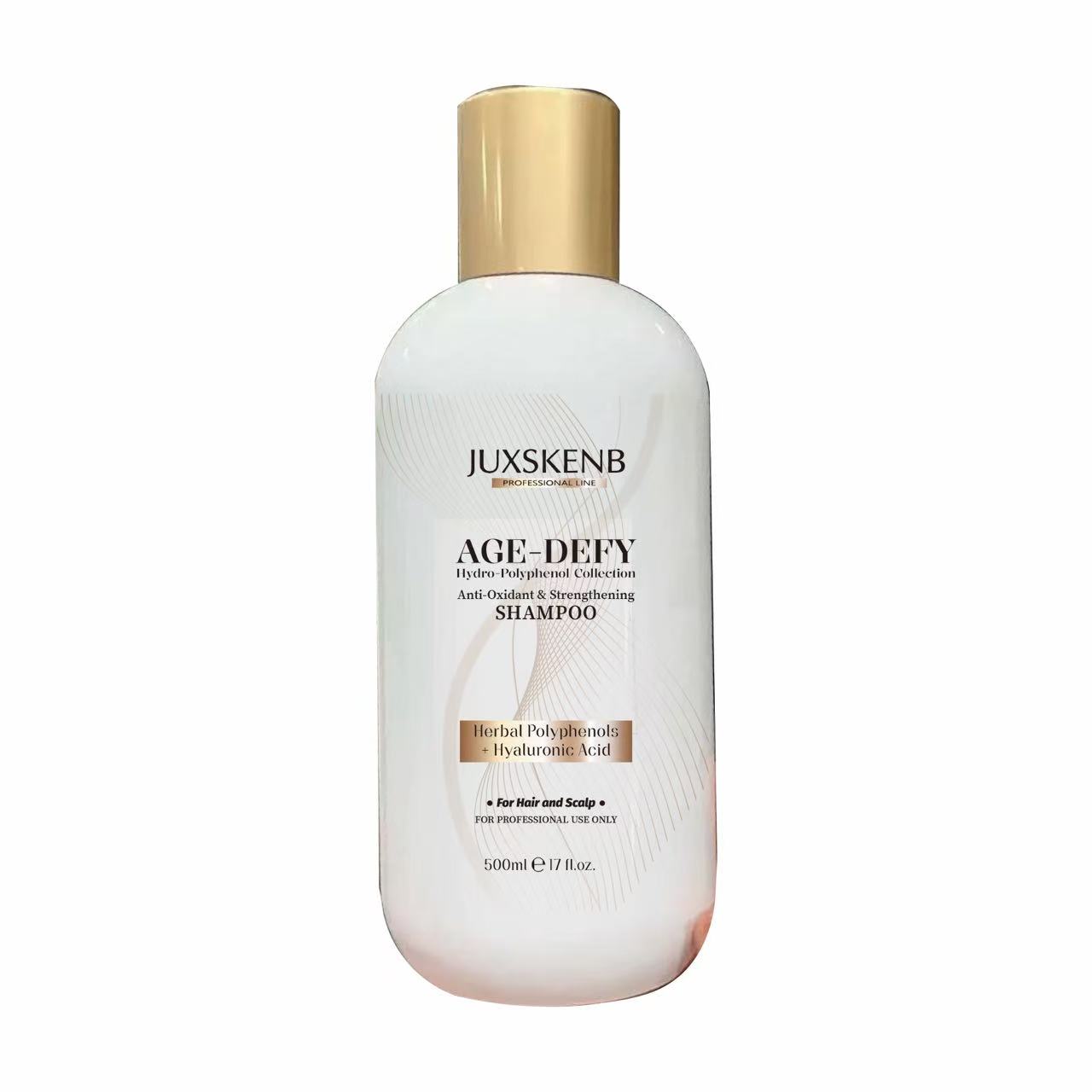 Discover our AGE-DEFY Hydro-Polyphenol Shampoo, specially formulated for professional use. Infused with potent Herbal Polyphenols and Hyaluronic Acid, this advanced shampoo provides intense antioxidant protection while strengthening hair from root to tip. It helps combat signs of aging in hair and scalp, restoring vitality and resilience. Ideal for salon professionals seeking superior