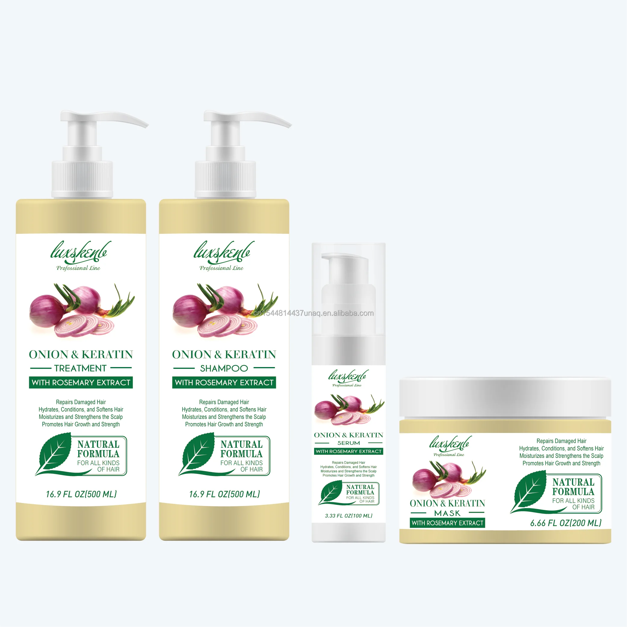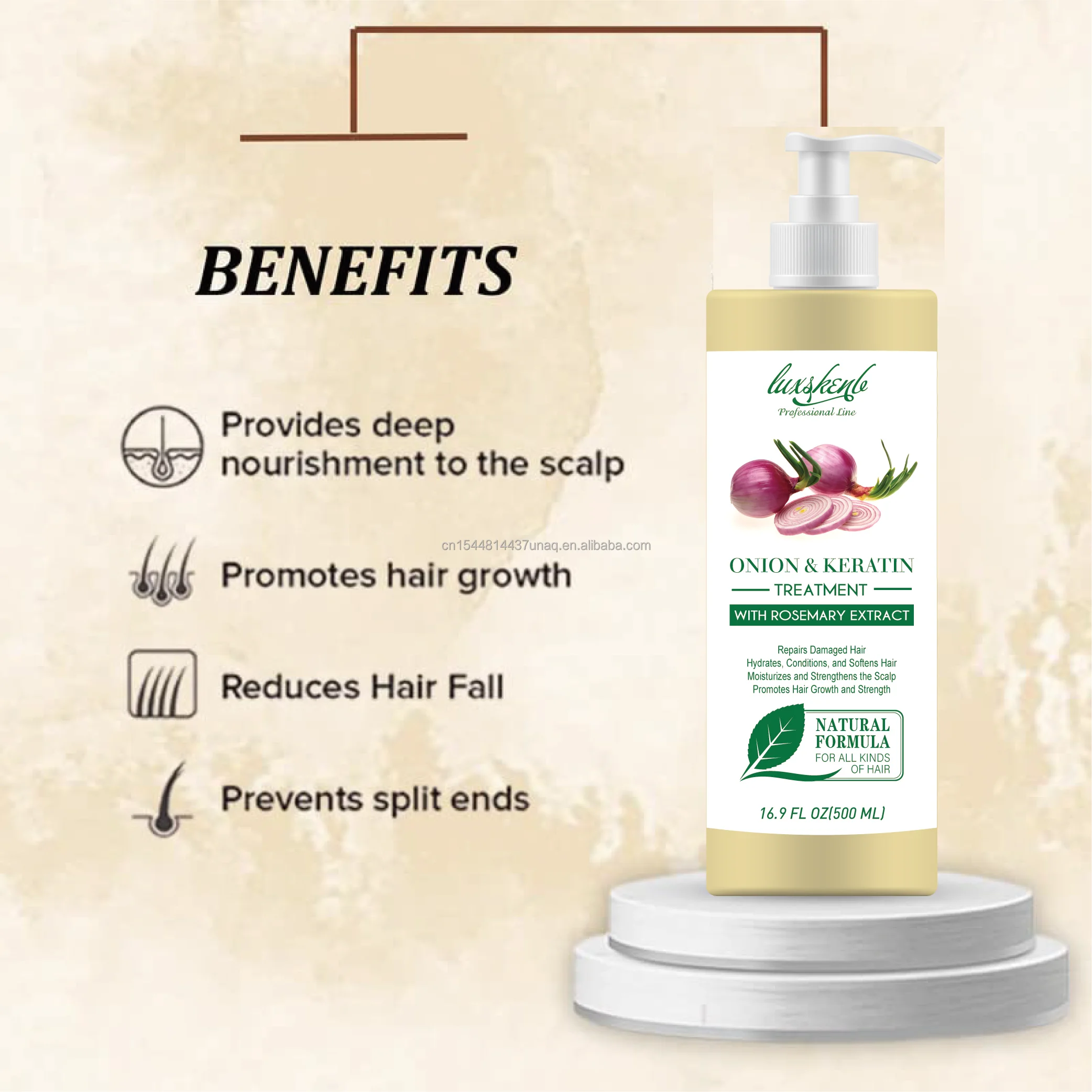 🌱 Enhanced Hair Growth: The combination of onion and rosemary improves blood circulation, delivering essential nutrients to hair follicles for faster, stronger, and healthier hair growth. Keratin adds to the benefits by improving hair health, providing shine, and smoothness.